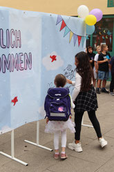 Also, am ersten Schultag hilft man dem Patenkind bei dem Weg in die Klasse.